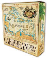 Puzzle of the Caribbean from Florida to the northern edge of South America; including the Bahamas, Cuba and the Antilles. Includes major islands in the Caribbean sea and major towns and cities.